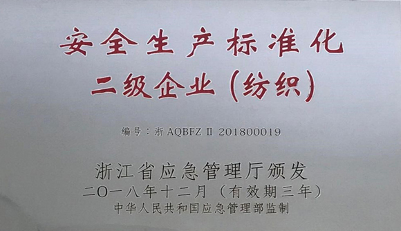 雅戈尔毛纺被浙江省应急管理厅评为安全生产标准化二级企业(纺织)。