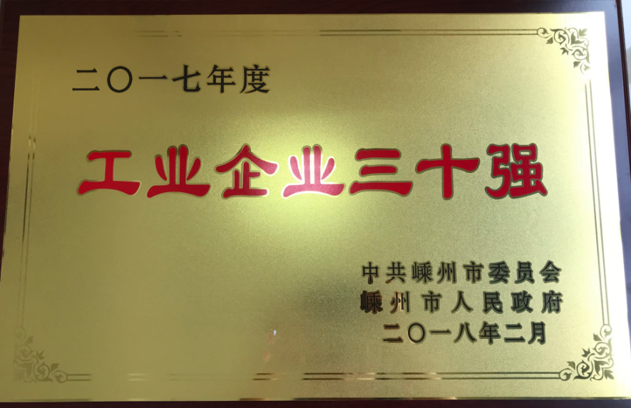 雅戈尔毛纺荣获中共嵊州市委、市人民政府颁发的“嵊州市工业企业三十强”荣誉称号。
