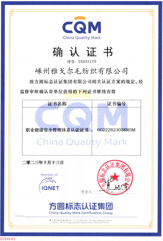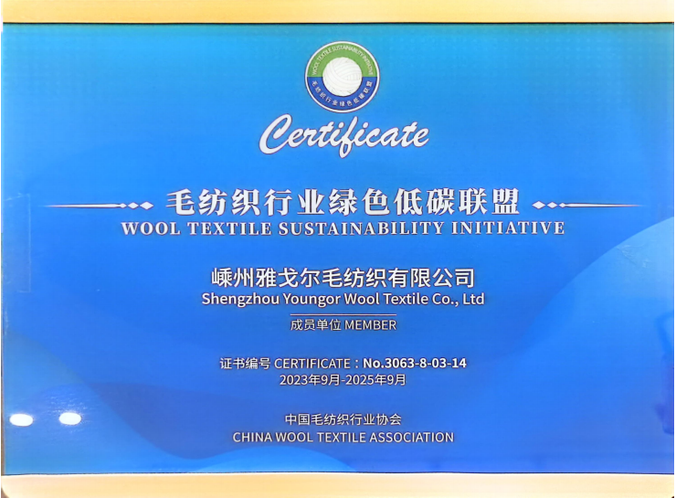 雅戈尔毛纺荣获“浙江制造认证”证书。