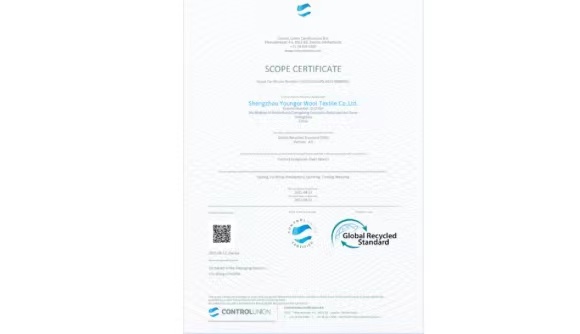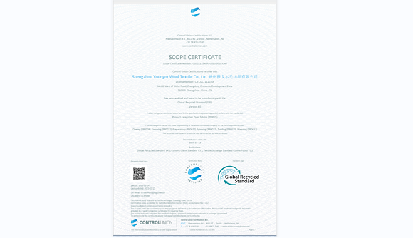 雅戈尔毛纺获得GRS全球可再生涤纶回收标准。