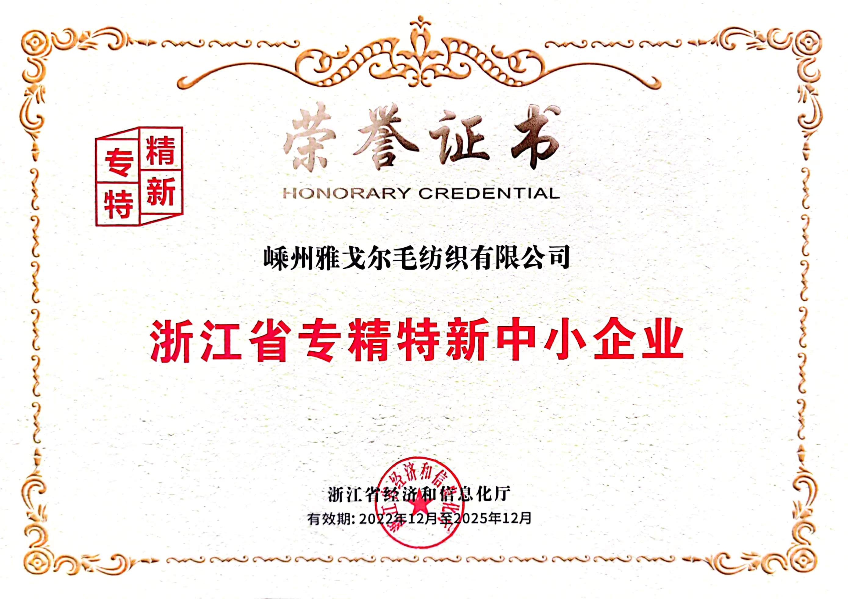 被评为绍兴市“绿色工厂”企业、浙江省创新型中小企业、浙江省“专精特新”中小企业