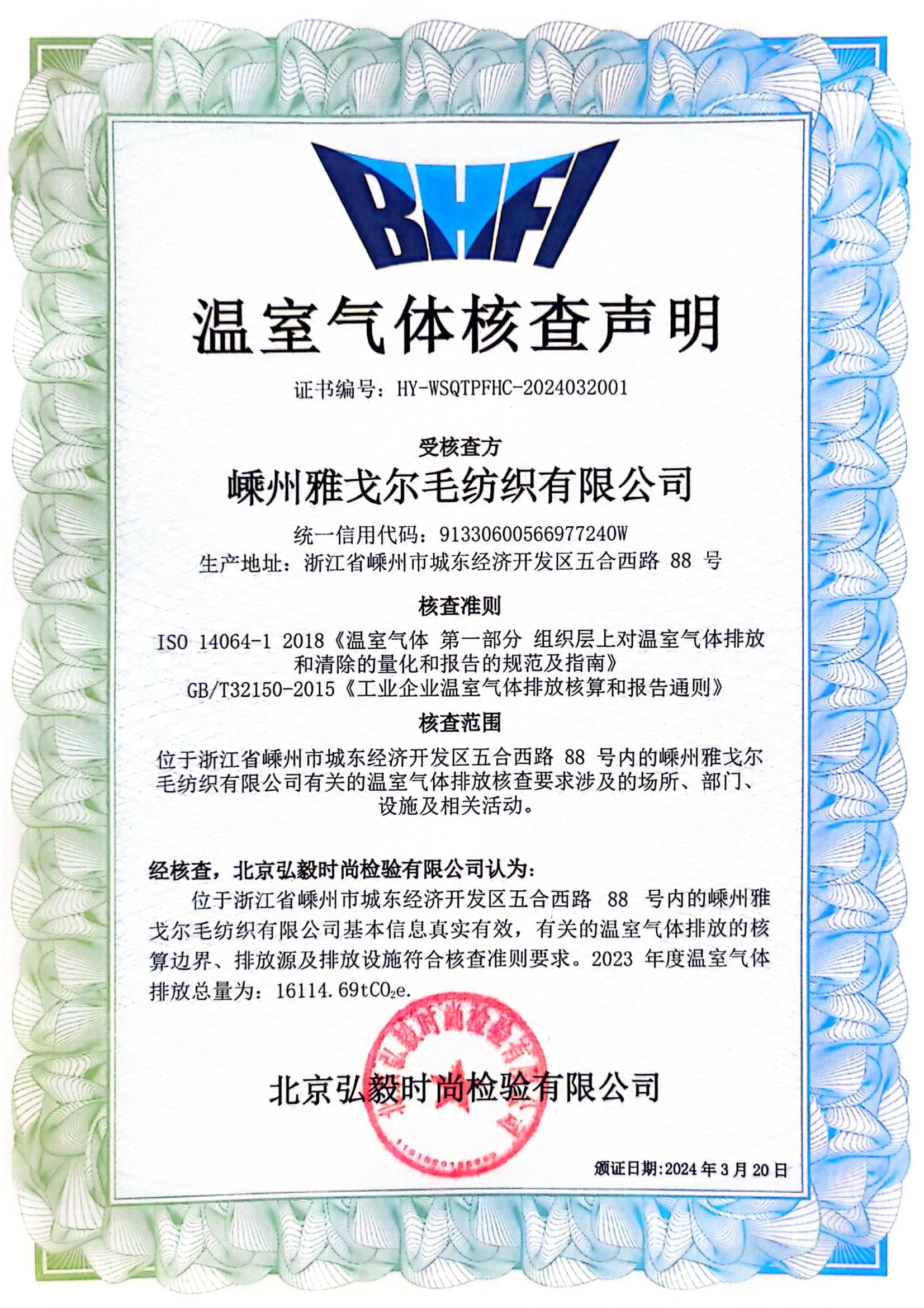 经国家知识产局审查,雅戈尔毛纺研发的“一种低温染色助剂、低温羊毛染液及染色方法”被授予专利权,获得发明专利证书。