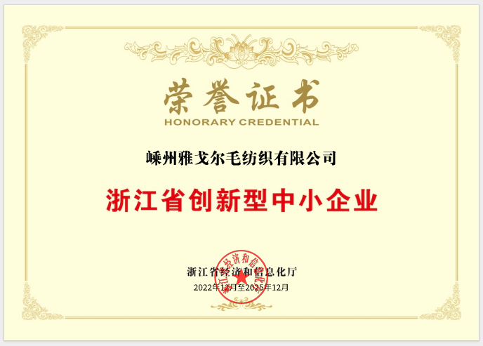 雅戈尔毛纺被浙江省科技厅认定为高新技术企业。