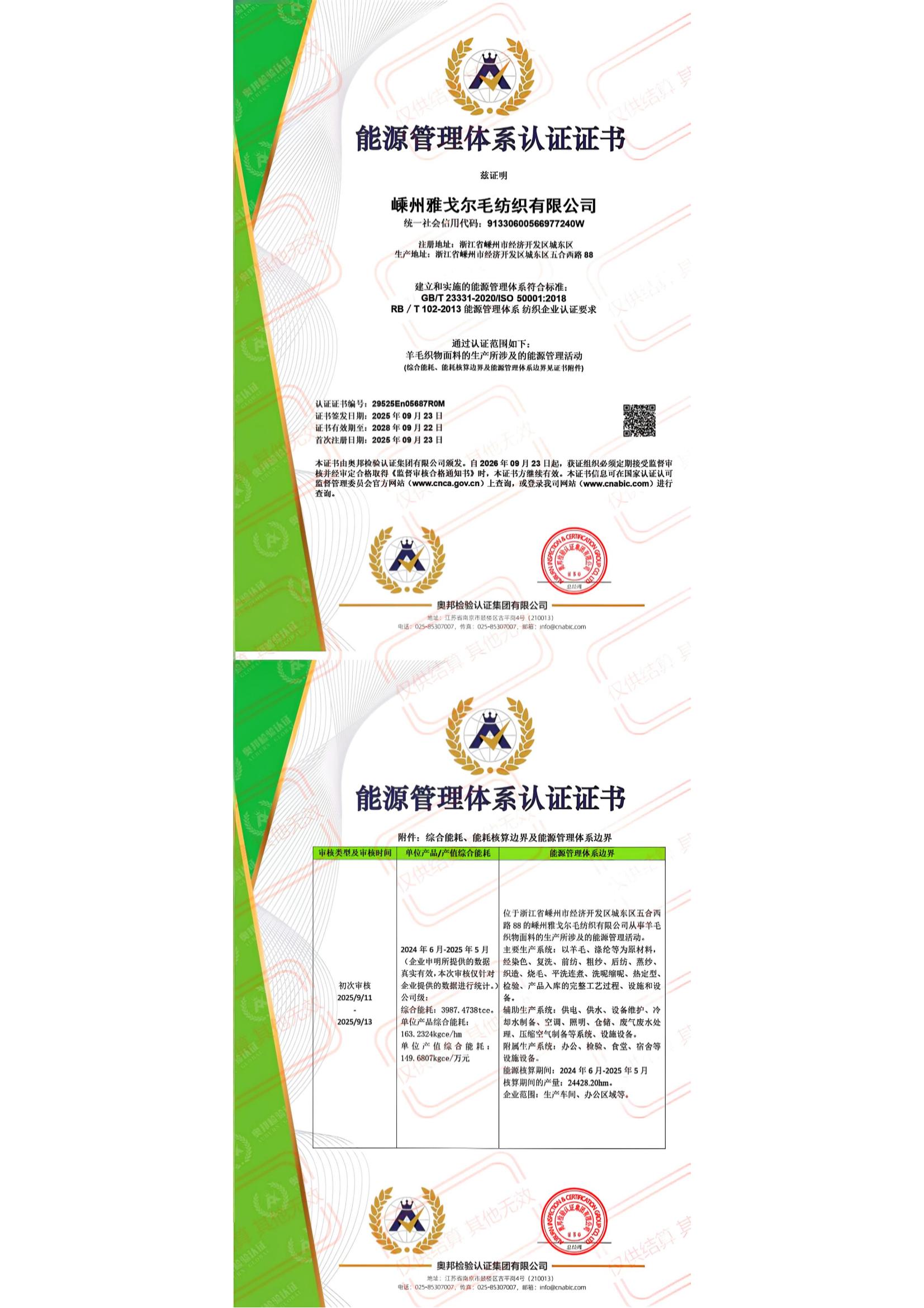能源管理体系认证证书