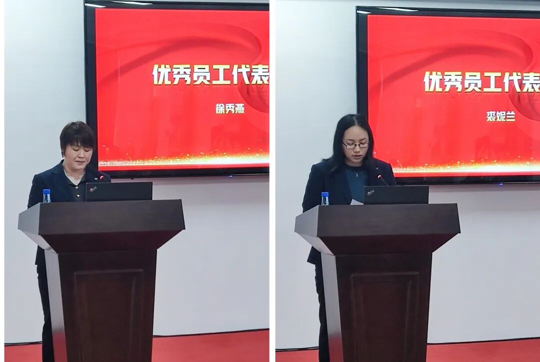 优秀员工代表徐秀燕、裘妮兰同志发言